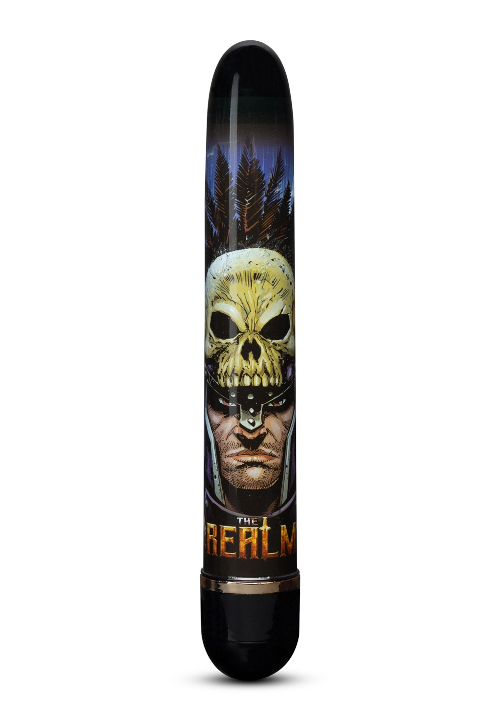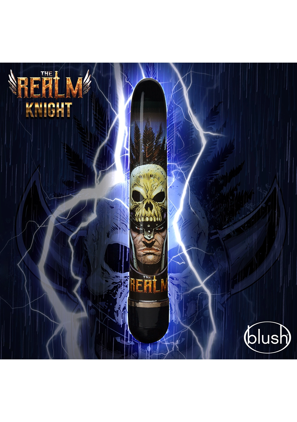 It’s not just myth… with The Realm your epic fantasies come to life! The Realm Knight is always ready to battle for your orgasms. Wielding adjustable, multi-speed vibrations, its ultra-smooth body is safely embedded with an RPG-inspired design. The Realm Knight is perfect for solo or couples play, and for both internal and external use. Made of non-porous ABS plastic, The Realm Knight is body safe, phthalate-free, and easy to clean. Requires 2 AA batteries (not included).