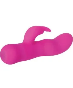 Enjoy this versatile smooth silicone twice-as-nice vibrator featuring a flexible contoured insertable segment–soft rippling on its shaft gives added sensation during penetration, offering extra internal stimulation in addition to the external clitoral vibrator. That part ends in a flat paddle shape, which flickers slightly but can also nestle into the clitoris when as it’s used. Two motors offer 12 function settings, push-button controls with instant on/off button make it easy to explore them all, and a memory chip allows you to resume your last used function when you decide to play with the toy again. And it’s waterproof! Comes with a 90 day warranty; uses 2 AAA batteries (not included).