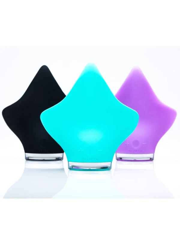 Mimic turns on with a press of the center button and powers on at mid-range intensity. To increase, press the + button, and to decrease the power, press – . Use the travel lock when you don’t want it to turn on unexpectedly: While powered off, press and hold down the + and – buttons for 5 seconds. A flashing light will indicate the item is locked. Repeat to unlock. A full charge powers Mimic for two hours – the manufacturer suggests you do a full charge before the first use. Please use with water-based lubricant only. Waterproof; easy to clean with mild soap and water.