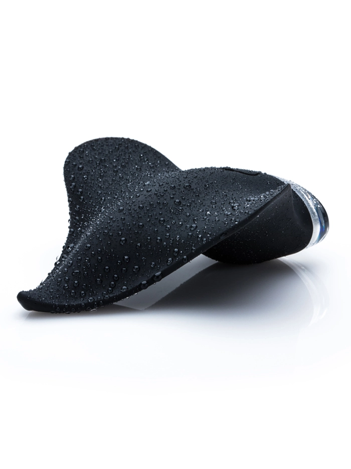 Curvy like a manta ray–or a vulva–this external vibrator can lay over the mons area and stimulate clitoris as well as labia, whether you’re using it solo or taking advantage of its low profile to fit it between bodies during sexytime with a partner. The shape also offers nice options for stimulating the testicles–it has pleasure potential for every body! Designed to fit the contours of your hand, with eight easy to adjust intensity levels: one steady vibration plus seven patterns. The vibration quality is soft and somewhat buzzy, which makes it a great option for those who don’t love really intense power and also for those looking to take their time and ramp up with gentler vibration. Experiment with the varied sensations offered by the less-buzzy flat parts of the vibe vs. the edges and pinpoints–the intensity can ramp up pretty high, depending on how focused the vibration is in the part of the toy you concentrate on. It’s all about finding the levels and angles you prefer.