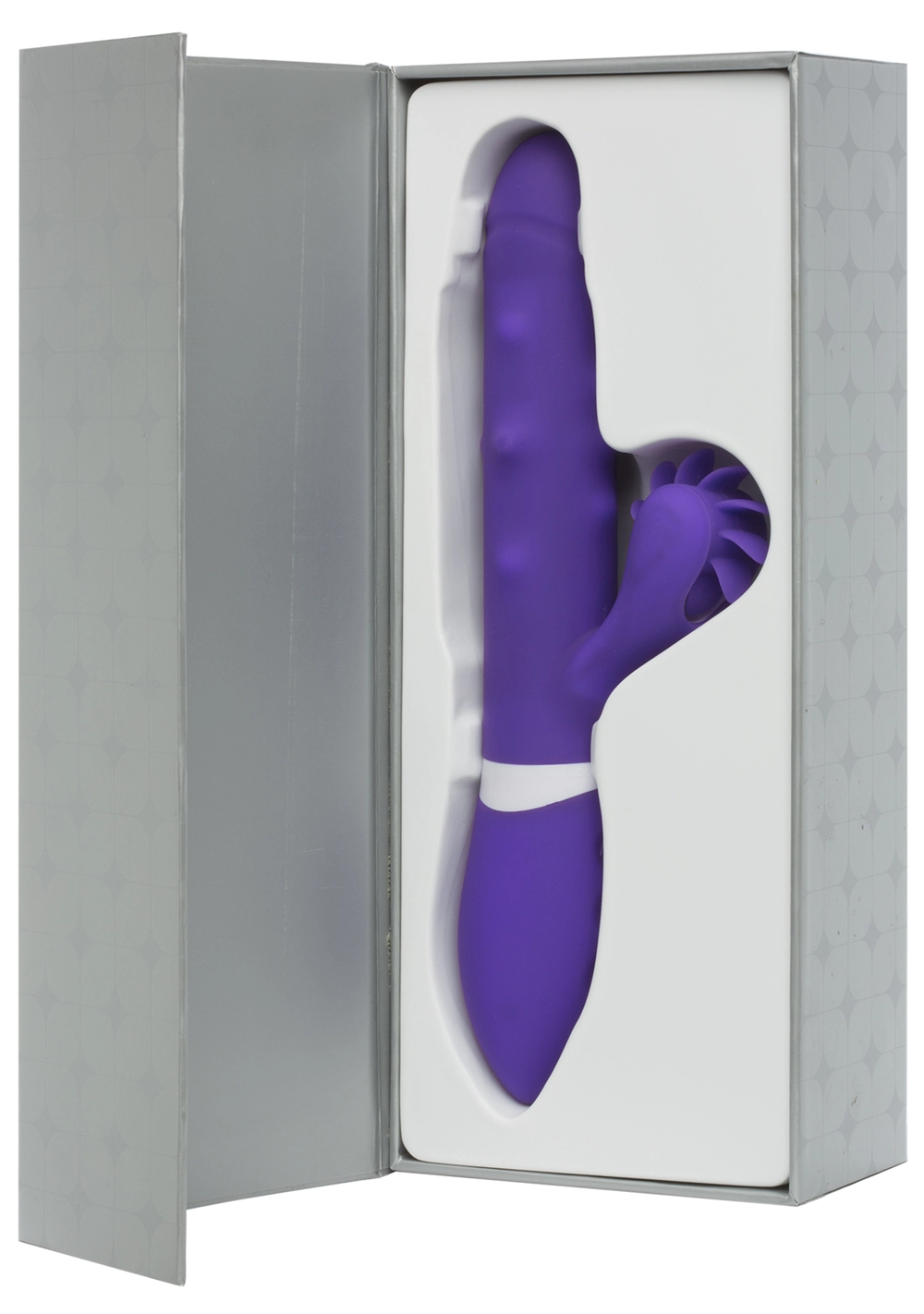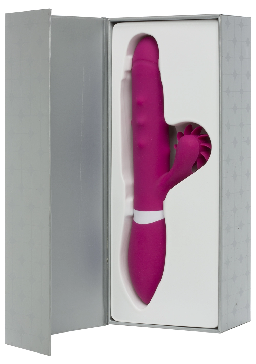 Three independently-controlled motors provide endless pleasure options – use one, two, or all three in any combination of the 8 shaft vibration modes, 3-speed stimulating beads, and multi-function rotating wheel. This luxurious premium silicone vibrator is 100% body-safe, and conveniently recharges via the included USB cord.