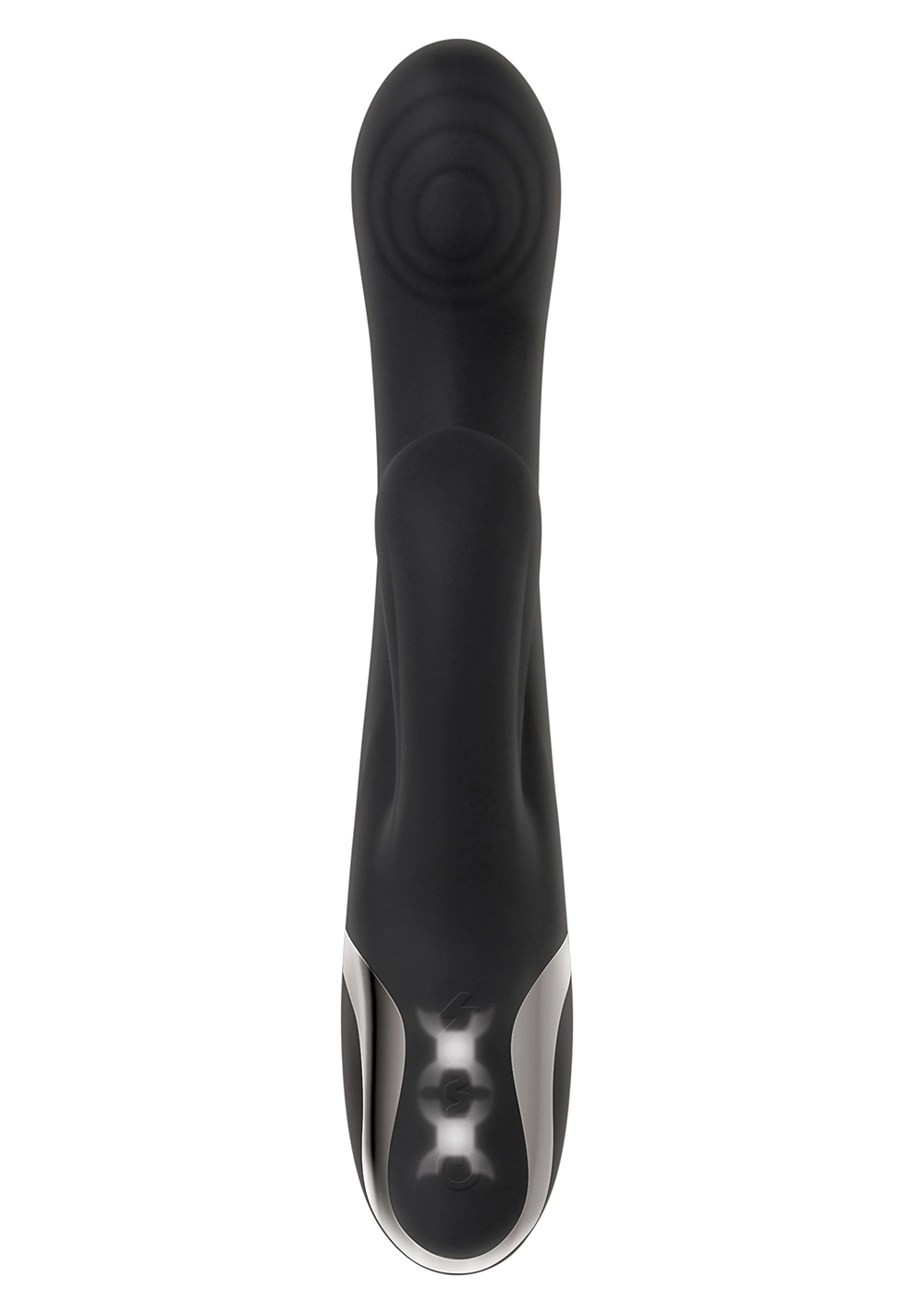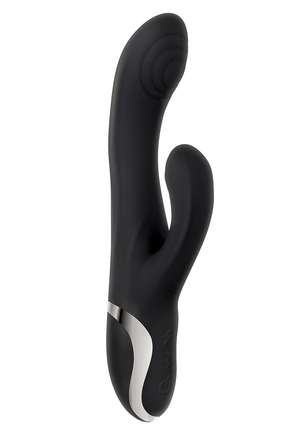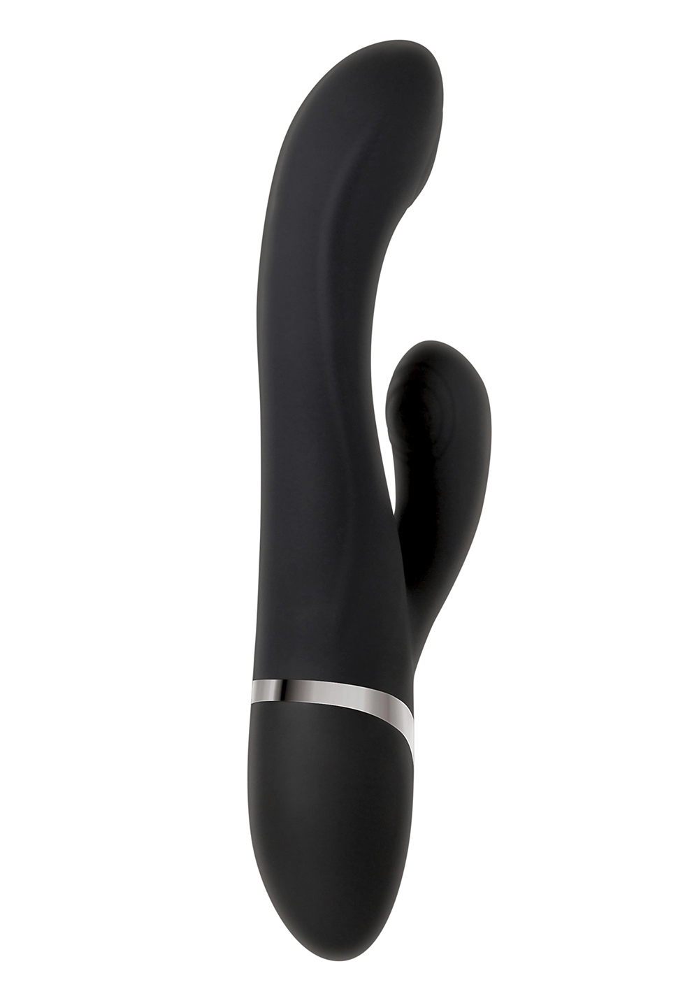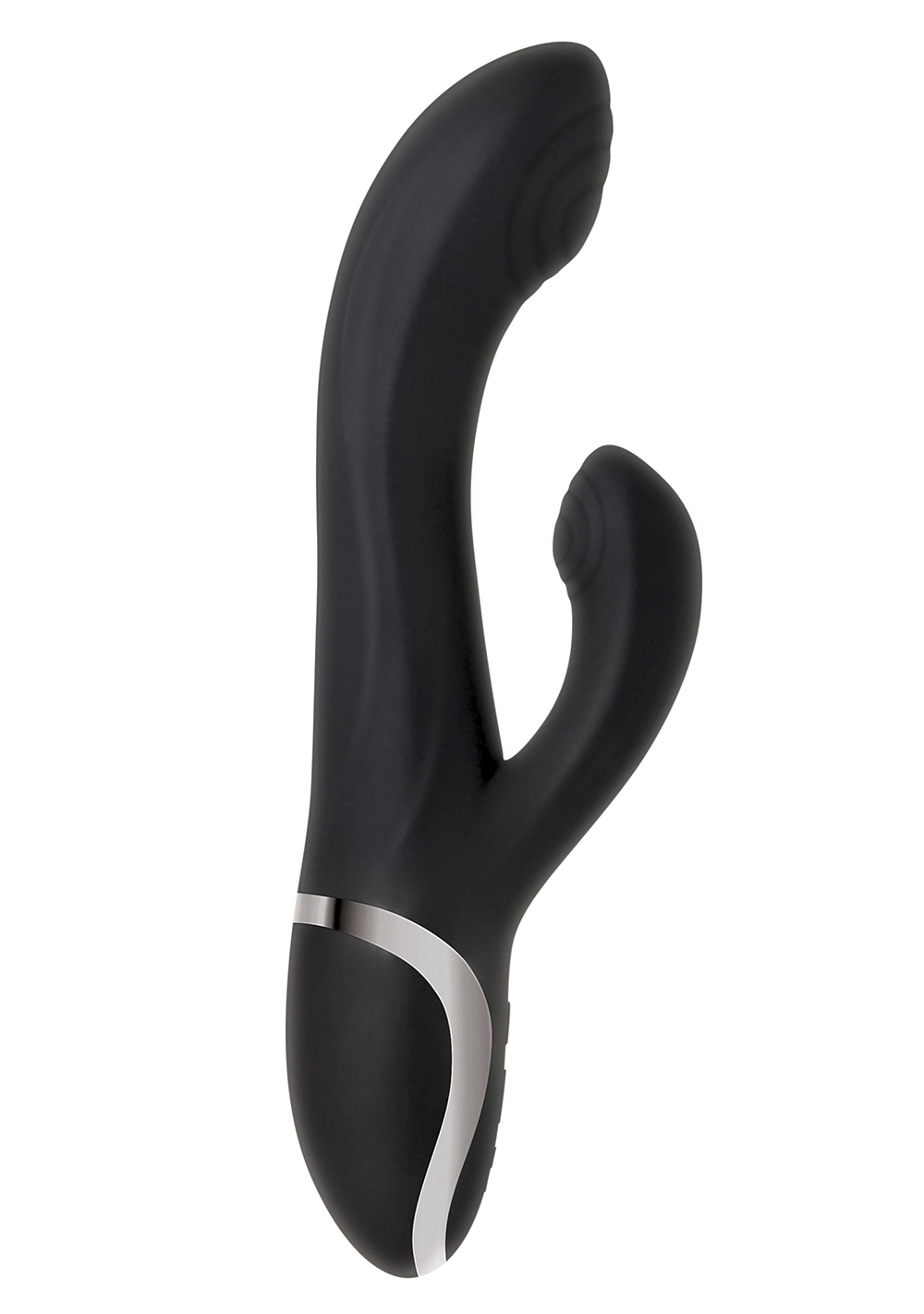 Features extremely powerful dual vibrator. For women who want intense vibrations. 3 super powerful shaft speeds. 10 powerful clitoral speeds and functions. Made from luxurious silicone. Textured clitoris stimulator and shaft for added pleasure. Gently curved shaft for G-spot stimulation. ABS plastic, chrome plated detail. Height 9 inches, depth 2.75 inches, width 1.7 inches. Weight 8.1 ounces. Fully waterproof vibrations and submersible. Phthalate free and latex free. USB Rechargeable, cable included.
