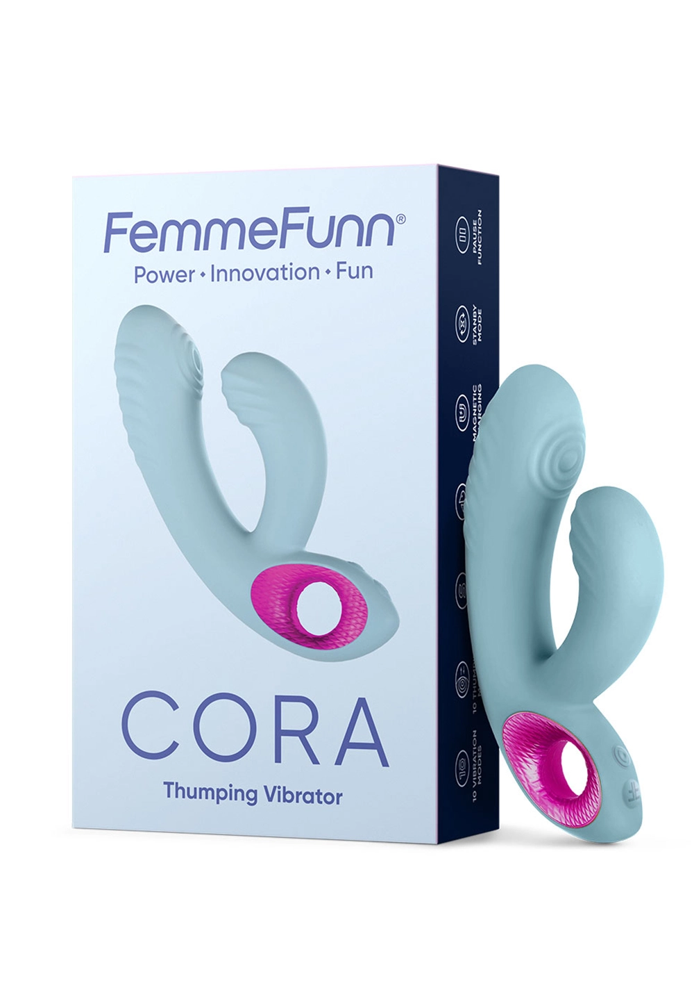 Equipped with two super powerful motors exclusive to Femme Funn, CORA delivers sensational performance in all ten thumping and ten vibrating modes.