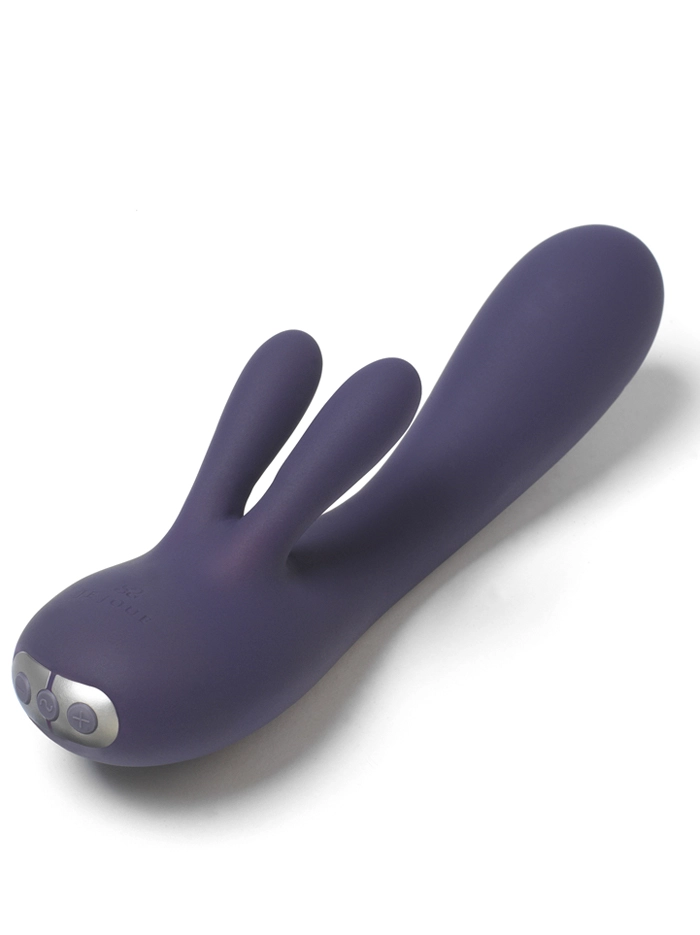 Elegance and power aren’t the only features that make the Fifi Waterproof Rechargeable Vibrator twice as nice. Curved to follow the natural contours of the body, this rabbit-style vibe features three motors: one providing incredibly rumbly vibration to the shaft and two for the independently-operating ears (one motor per ear!) that together deliver amazing clitoral stimulation. Made with super velvety silicone, Fifi’s five intensities and seven vibration patterns offer endless variety while waterproof construction makes it tub-friendly. The premium retail box is a perfect home for Fifi when not in use, and magnetic induction charging makes it an eco-smart choice for your personal pleasure. Sensually sleek and sensationally strong, Fifi by Je Joue is high-performance pleasure in a stylish package.