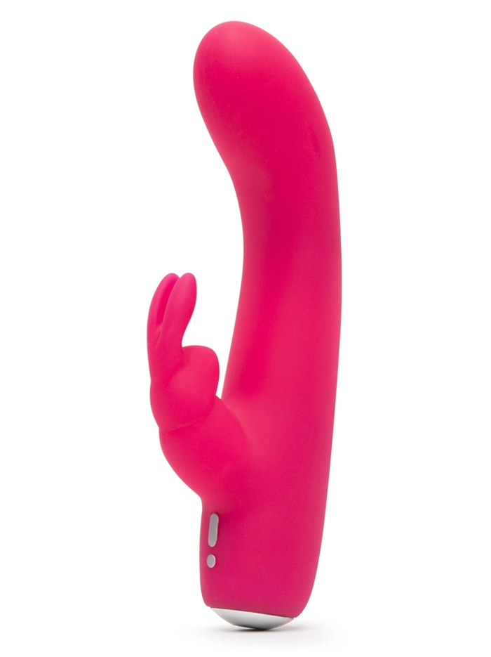 Cute and versatile, this rabbit vibrator is a petite but powerful twice-as-nice toy whose firm, slender shaft angles for g-spot stimulation while external bunny ears flutter against the clitoris or wherever you’d like to focus them. The waterproof mini rabbit shape delivers strong vibrations and features 12 modes (three intensity speeds and nine patterns) to bring you pleasure the way you like it. Rechargeable; the long button flashes when charging, and when it’s ready to go, that light is solid, letting you know it’s ready to use. 150 minutes of charge time yields 120 minutes of use. To turn on, press the button down for two seconds. Once on, continue pressing to move through the speeds and patterns. To turn off, hold the button down again for two additional seconds. Includes a travel lock for carefree travels–just double-click the button to activate or deactivate.