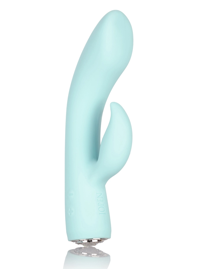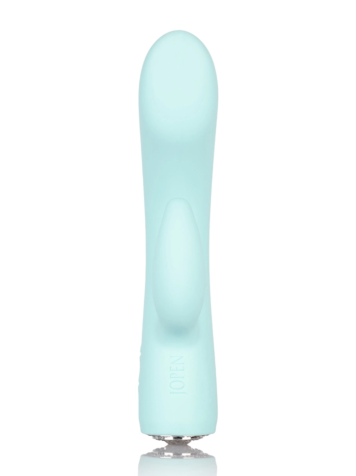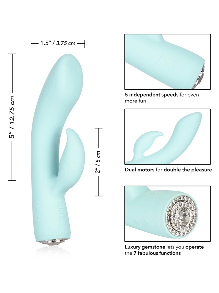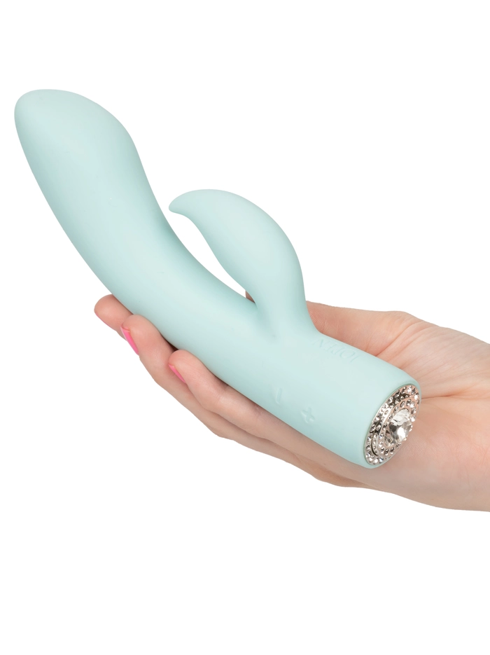 Enjoy twice-as-nice pleasures with this elegantly-shaped silicone vibrator. Smooth and satiny, its flexible shaft is well-shaped for G-spot stroking, while the contoured external teaser has a tapered tip for spot-on clitoral vibrations. The shape moves with the body, and this sophisticated toy sports seven functions of vibration, pulsation and escalation to explore, with five independent speeds for each. A gem-shaped push button control located on the base controls all functions; hold for 3 seconds to turn on, then continue to press until each function is reached. Just press the +/- button, located on the side, to increase or decrease intensity for any given function. To turn off, hold for 3 seconds. USB rechargeable; a two-hour charge yields 40 min of high-speed use. When plugged into its power source, a solid red LED indicates the vibrator is in Charge mode. A white light indicates Marilyn is fully charged. Waterproof; clean with mild soap and water. We recommend using water-based lubricant.